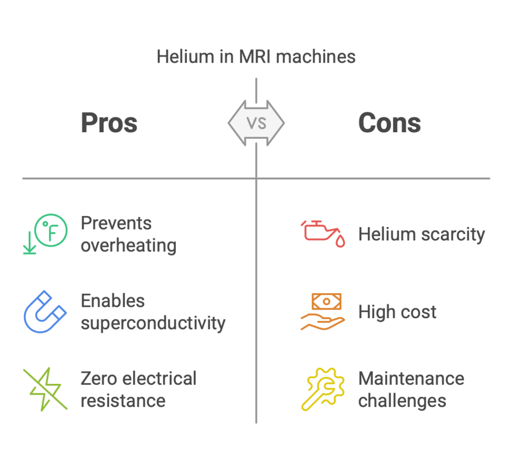 Why Is Helium Used in MRI Machines? Nick Vasco | 3 minutes | April 30, 2025 Helium is used as a cooling agent in MRI machines (in liquid form) because of its extremely low boiling point. This fluid keeps superconducting magnets at temperatures of around -269°C (-452.2°F) to enable proper imaging function. Below, we break down how helium pulls this off, why nothing else comes close, and how newer systems are solving helium’s biggest drawbacks. Helium Plays a Critical Cooling Role in MRI Technology In an MRI machine, helium works similarly to the coolant in a car’s engine—though it is way more extreme. Without it, the whole MRI system would overheat and fail. Superconducting magnets only work at incredibly cold temperatures. Liquid helium gets them there. Once the coils hit that temperature, they become superconducting: electricity flows with virtually zero resistance. This super-cooling process lets magnets generate the powerful magnetic fields necessary for detailed images of the human body. Why Helium Is Irreplaceable in MRI Machines Helium has the lowest boiling point of any element on Earth. Nothing else can reliably reach the temperatures MRI magnets demand. Helium is also the only element that won’t solidify under normal atmospheric pressure, no matter how cold it gets. That property is exactly what makes it reliable inside an MRI. Traditional MRI machines use about 1,700 liters of liquid helium (enough to fill roughly 10 bathtubs). Some of that helium naturally evaporates over time, so it needs periodic top-offs. Further Reading: What Is Helium Used for in Hospitals? Safety Features of Modern MRI Machines Helium’s extremely low boiling point and tiny atomic size make it difficult to contain. Modern MRI systems have gotten much better at handling this problem. For example, when helium suddenly boils off (also known as a quench), it rapidly expands into a gas that can displace oxygen in the room. That expansion rivals the force of a small explosion. Newer MRI systems handle this with built-in venting that directs the gas safely outside the building, protecting everyone in the room. Helium Efficiency Advancements in MRI Systems Now there are MRI systems that use less than 1% of the helium typically required in traditional systems. This reduction comes from a shift in design: instead of submerging the magnet in a large bath of liquid helium, modern systems use a sealed, vacuum-insulated chamber with just a small amount of helium, kept cold by a mechanical cryocooler. The trade-off: higher upfront costs, and repairs get more complex if the cryocooler fails. Choosing the Right Helium Supplier Helium keeps MRI technology running. Without it, one of medicine’s most powerful diagnostic tools goes dark. Whether you’re running a traditional high-field MRI or one of the newer reduced-helium systems, having a dependable supplier helps prevent unexpected downtime for your MRI machine. Further Reading: What Is Helium Used For? Nick VascoNick is an experienced B2B writer who brings his skill for crafting clear, easily digestible content to the industrial gas space. Latest Posts ... How Hot Does Acetylene Burn? Lawrence Haynes | 6 minutes | 03/19/2026 Interesting Facts about Dry Ice Tyler O'Brien | 5 minutes | 03/09/2026 Is Neon a Noble Gas? Lawrence Haynes | 4 minutes | 03/04/2026 Is Helium a Noble Gas? Tyler O'Brien | 5 minutes | 03/04/2026 Interesting Facts About Argon Tyler O'Brien | 5 minutes | 03/03/2026 Recommended Posts ... Lawrence Haynes | 6 minutes | 03/19/2026 How Hot Does Acetylene Burn? Acetylene burns at approximately 3,480°C (6,300°F) when combined with pure oxygen, producing the hottest flame of any commonly used fuel gas. This extreme temperature makes acetylene the go-to choice for welding, cutting, and metalworking applications where you need serious heat concentrated in a precise location. The flame temperature drops to around 2,400°C (4,350°F) when acetylene … Tyler O'Brien | 5 minutes | 03/09/2026 Interesting Facts about Dry Ice Dry ice is solid carbon dioxide that skips the liquid phase entirely and transforms directly from solid to gas at -78.5°C (-109.3°F). It has become essential across industries, from pharmaceutical shipping to food preservation and theatrical effects. Why Is It Called “Dry” Ice? Dry ice earned its name because it never becomes wet. Unlike regular … Lawrence Haynes | 4 minutes | 03/04/2026 Is Neon a Noble Gas? Yes, neon is a noble gas. Why Is Neon a Noble Gas? Neon is a noble gas because its outer electron shell is completely full, giving it zero chemical motivation to bond with other elements. Its electron configuration is 1s²2s²2p⁶, meaning all 10 electrons are locked into stable, filled orbitals. This is what chemists call …